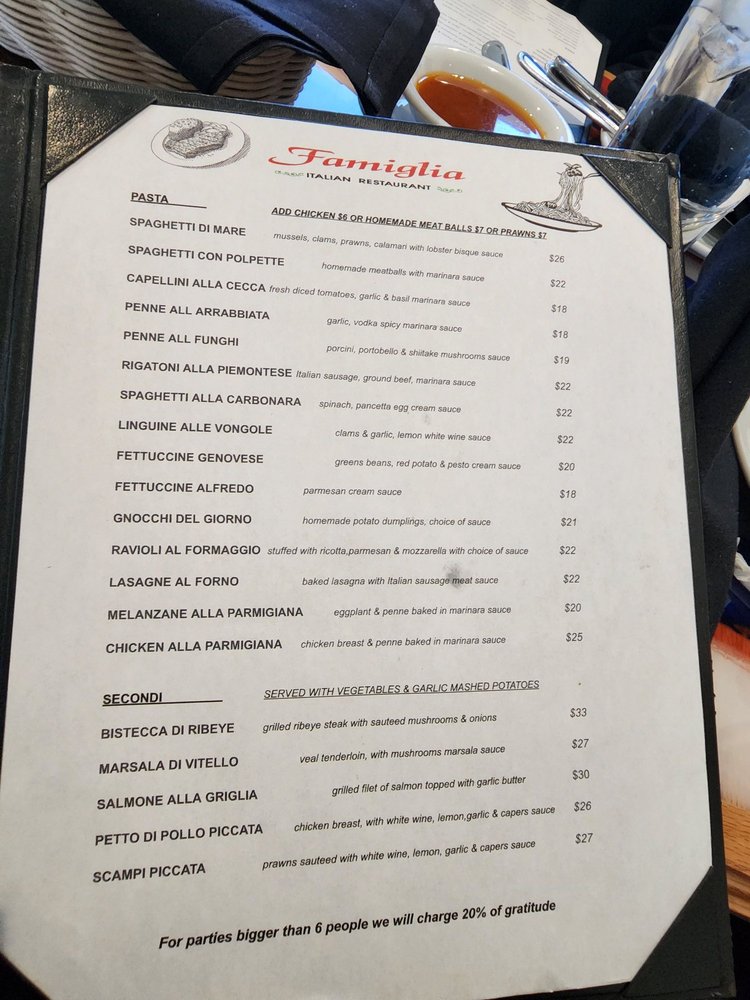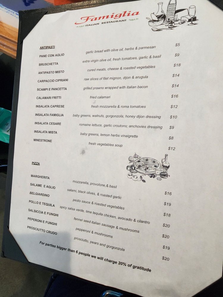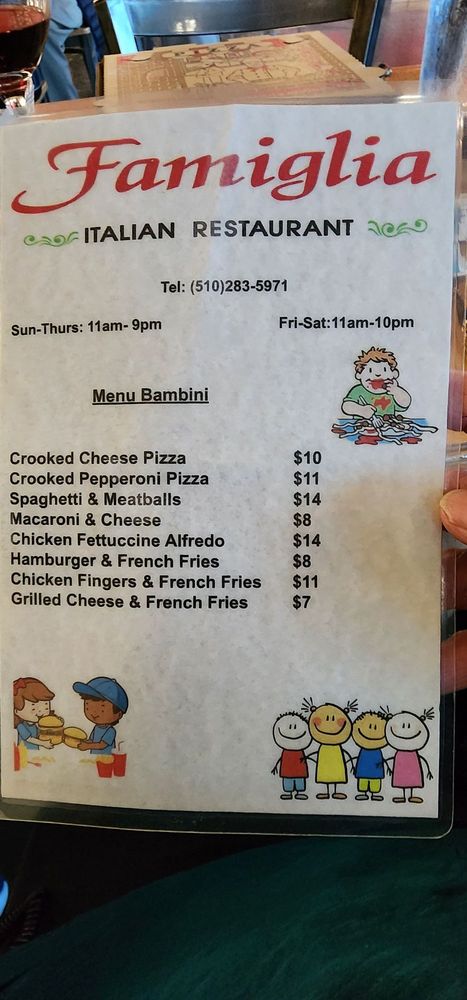 Introducing the menu of Famiglia Italian Restaurant, where authentic Italian cuisine meets a cozy atmosphere. Nestled in Pinole, this Latinx and women-owned eatery specializes in delightful pizzas and traditional pasta dishes that transport you straight to Italy.